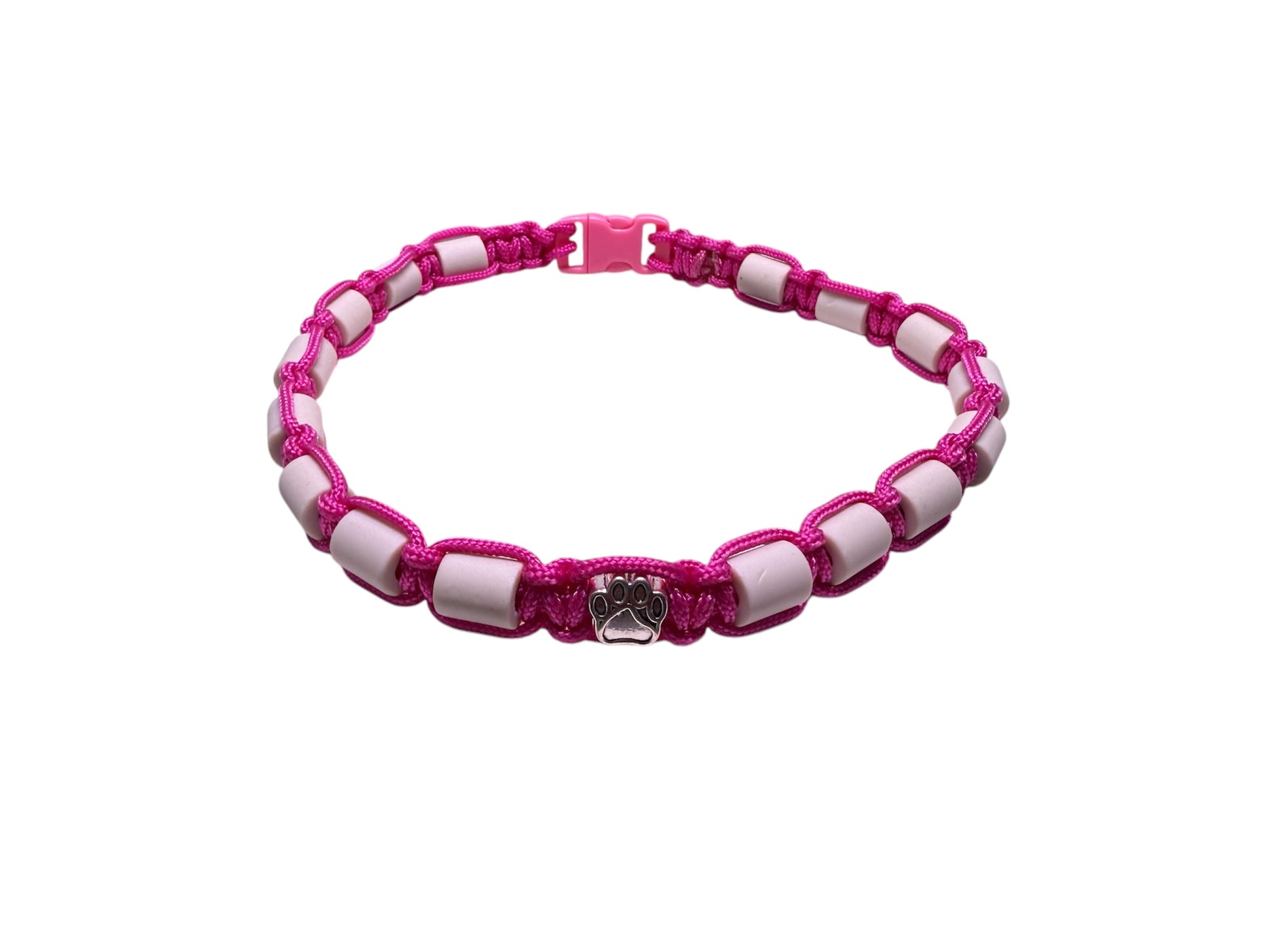 Flätade halsband med Paracordrep (2 mm) och keramikrör som verkar avskräckande mot fästingar.