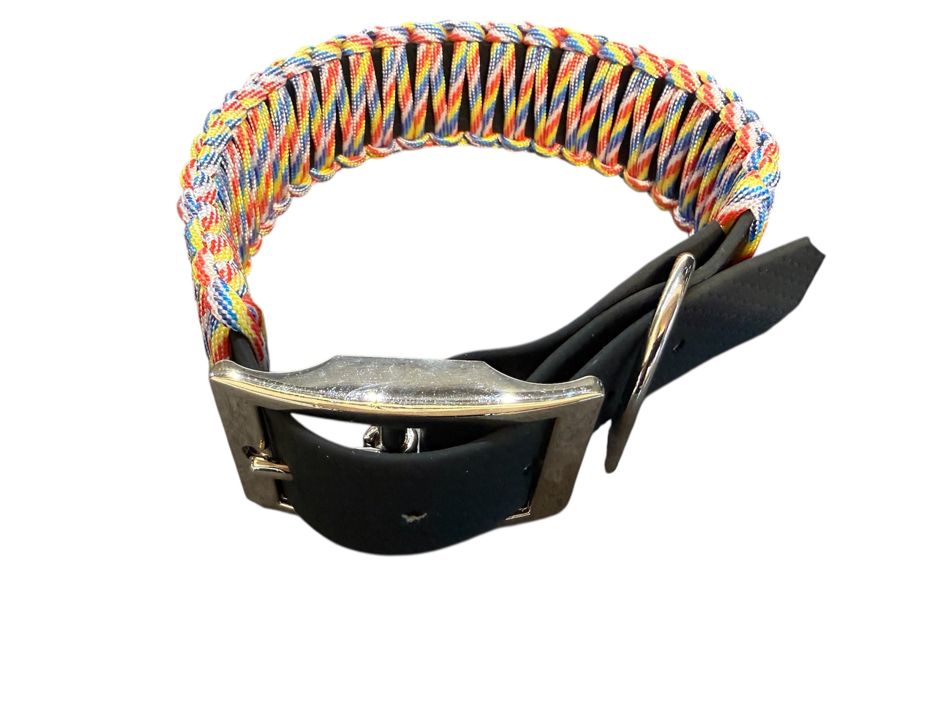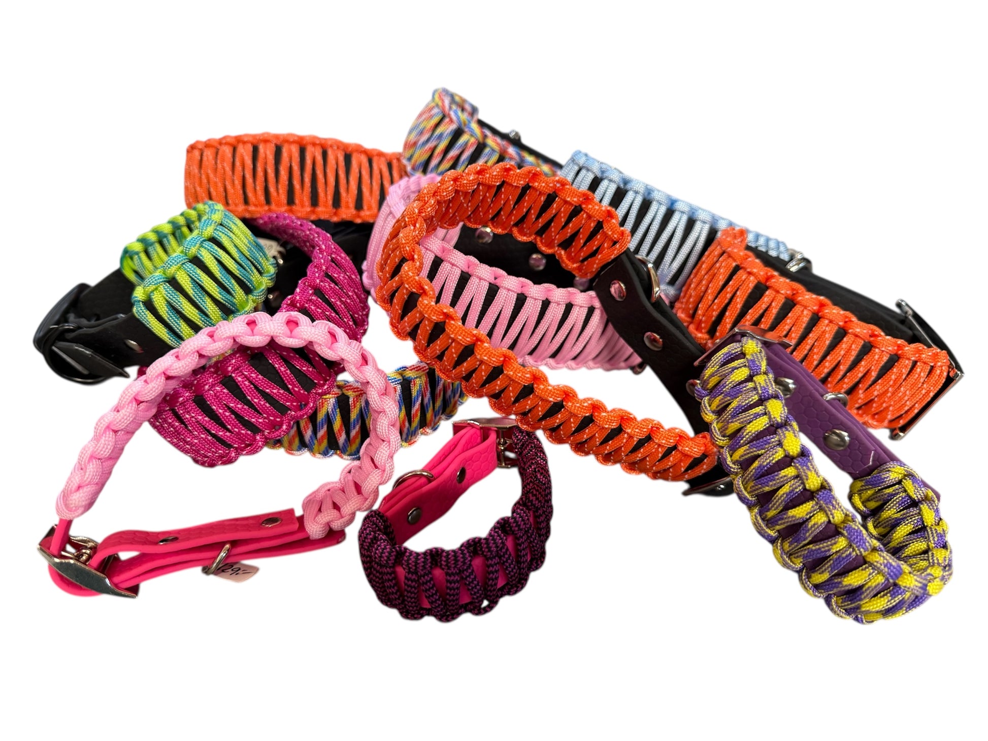 Ställbara hundhalsband flätade med Paracordrep, 4 mm, ovanpå ett halsband gjort av Hexacon.